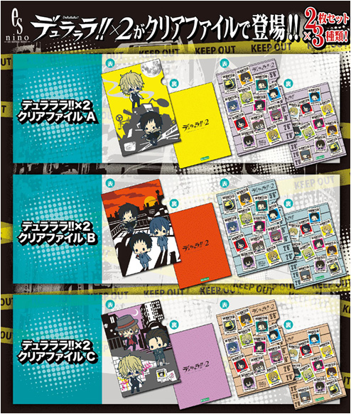 ラインナップは、クリアファイルA(平和島静雄、折原臨也)